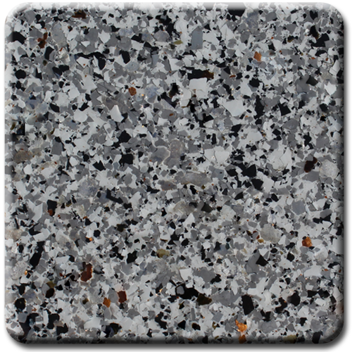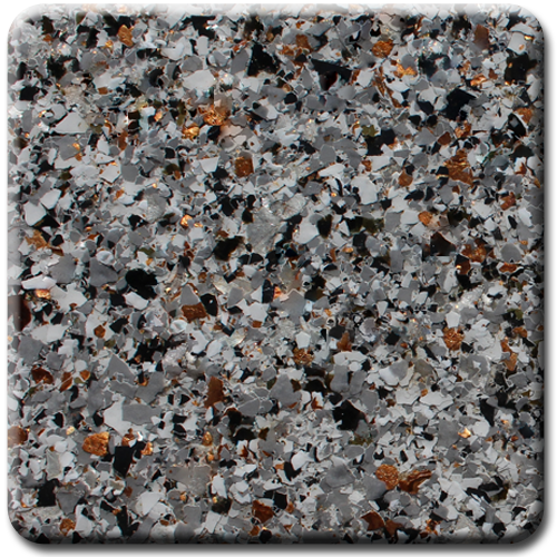 Using mica chips in a coating system takes your flooring “next-level”. Mica is a glimmering silicate mineral found as minute flakes in granite (and other rocks) and is available in many colors and opacities. When incorporated in a floor in a full-chip spread, it provides a unique texture, pattern and reflective quality that only mica can deliver. It simply outshines (literally) and overshadows standard chipped flooring. If you’re looking high-end, mica media systems are a great option.